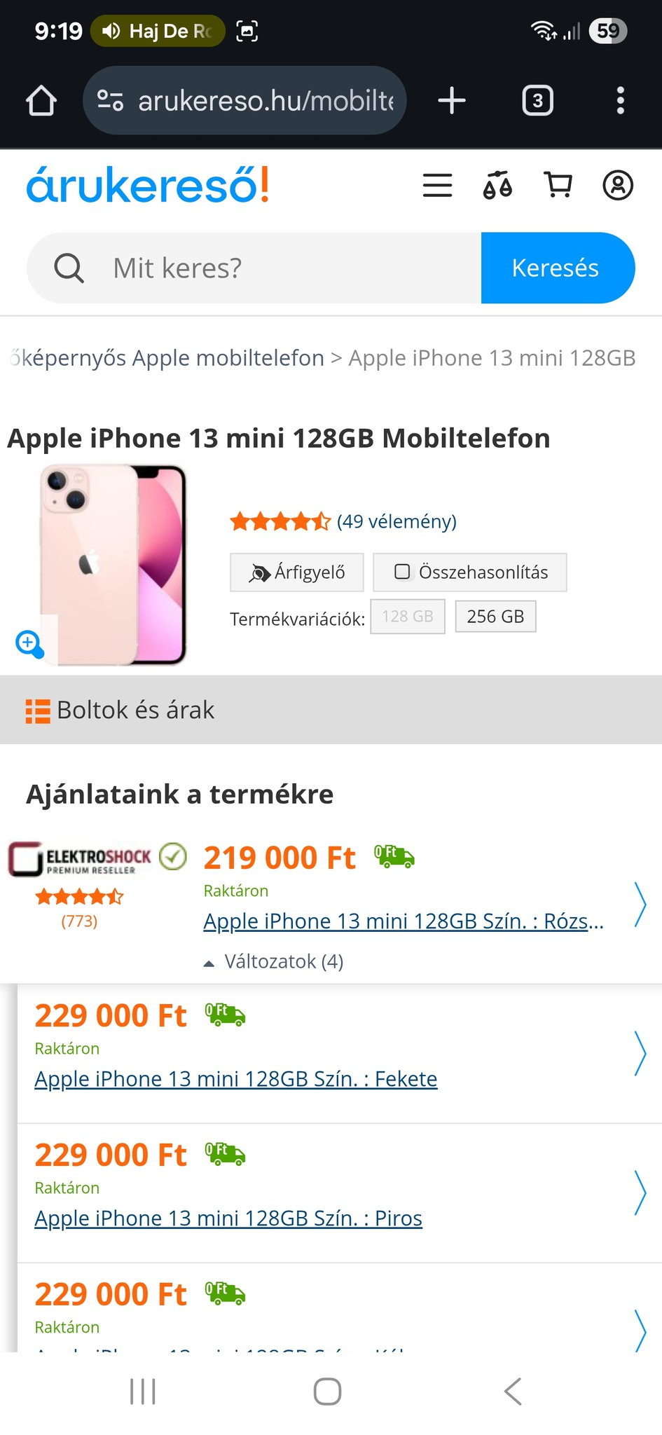 Legolcsóbb!!!ÚJ iPhone 13 Mini 128gb (Pink) 100% akku, 3 hónap garancia!