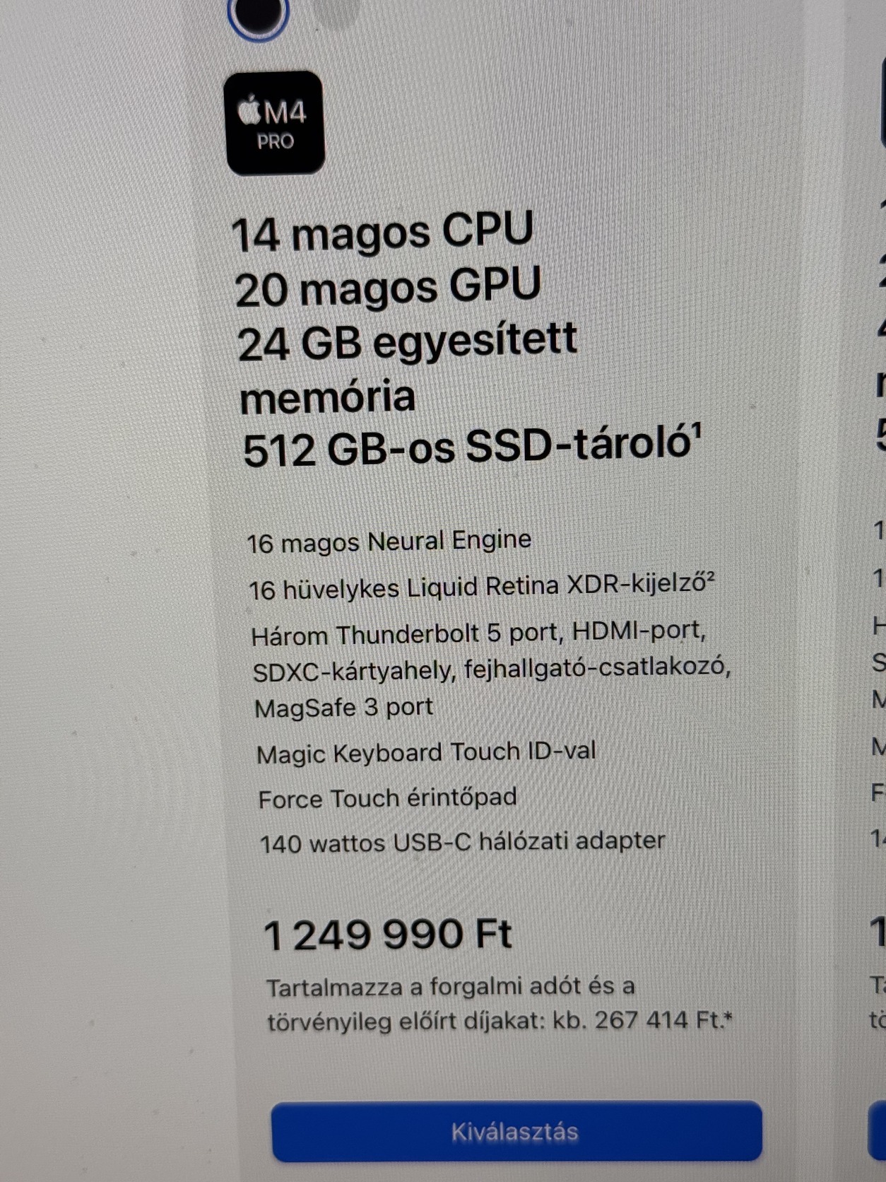 ÚJ kipróbálásra felbontott MacBook Pro 16 M4 Pro 14CPU/20GPU 24GB/512GB SSD Magyar billentyűzet Azon