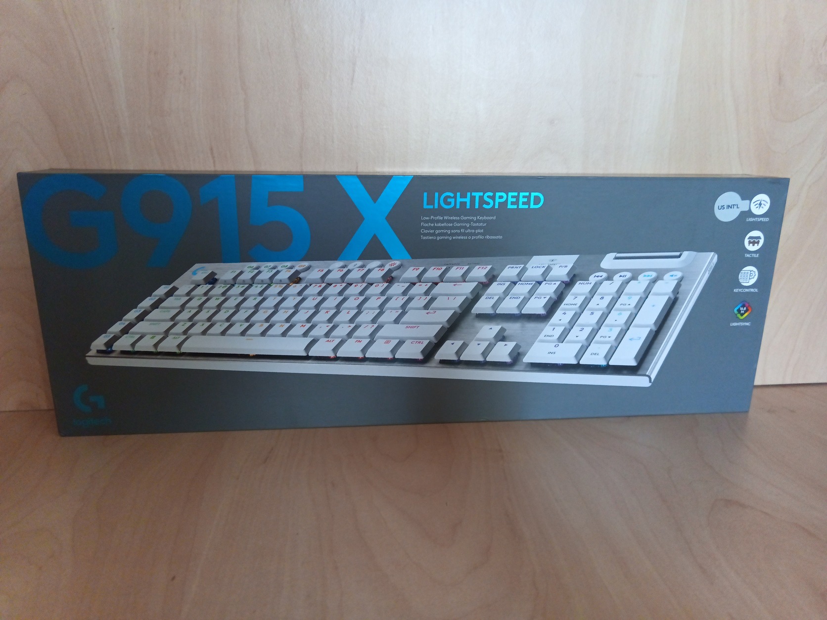 Gamer billentyűzet - gamer, vezeték nélküli, háttérvilágítással, alacsony profilú billentyűzet, Logitech GL Tactile kapcsolók, programozható makró gombok, amerikai (nemzetközi) kiosztás, Bluetooth, Lightspeed és USB-C bemenet, Li-pol elemmel működik.