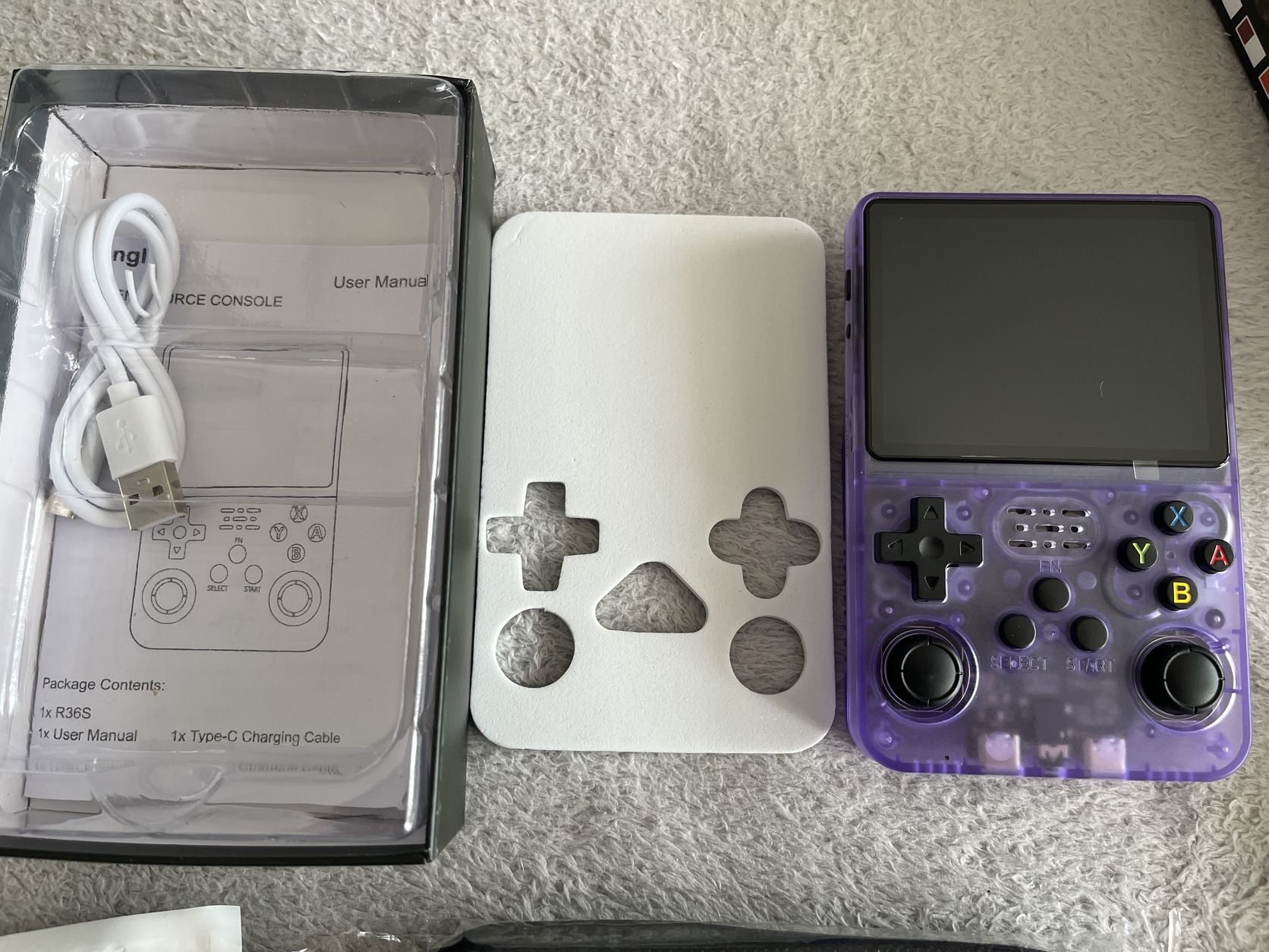Eladó a képeken látható új(csak kibontott) R36S - ArkOS Kiadású kézikonzol 64GB-os rajta mindenféle retro konzol emulátor és játékok.Ajándékba kaptam de nem vagyok oda a retro játékokért.Van hozzá új kijelzővédő fólia,fekete szilikontok,Átlátszó tok,és egy zippzáras hordozó tok is.