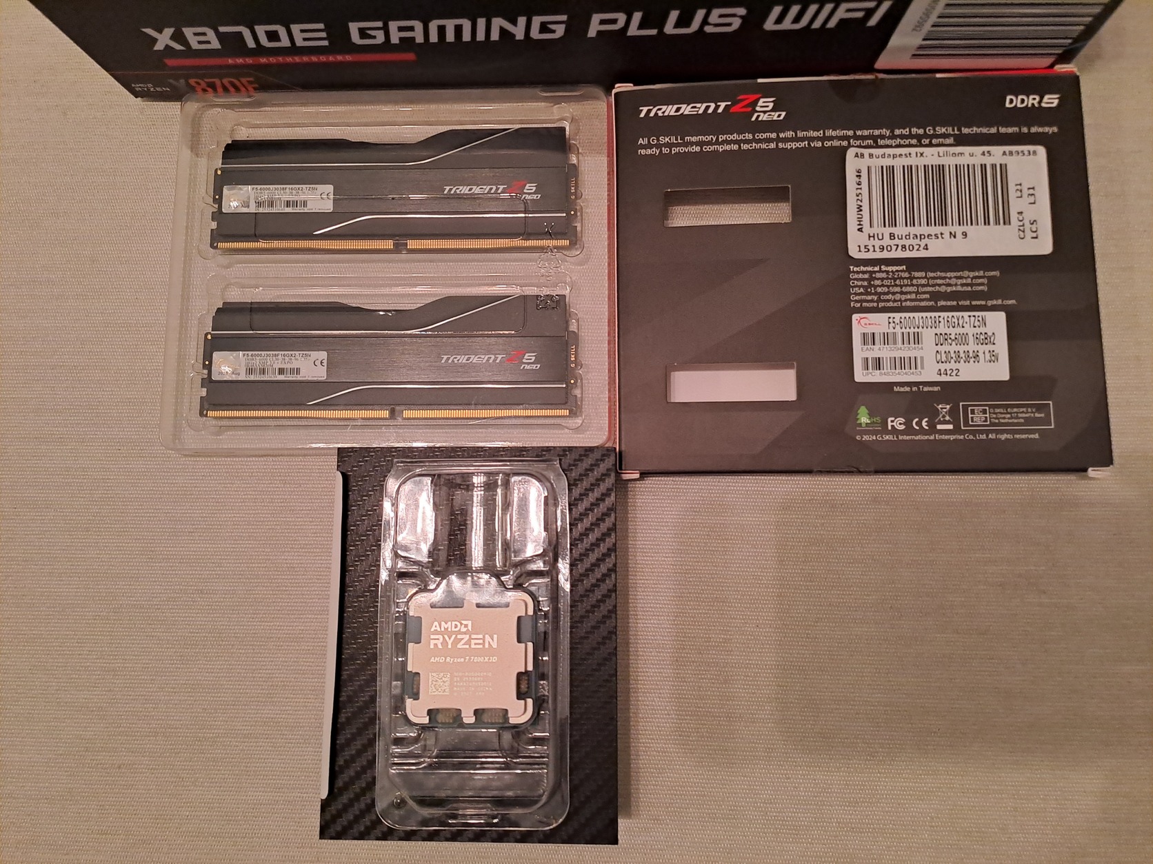 Új Ryzen 7 7800X3D + új 32 Gb DDR5 6000 + új MSI X870E GAMING PLUS WIFI félkonfig - 3 év Alza gari