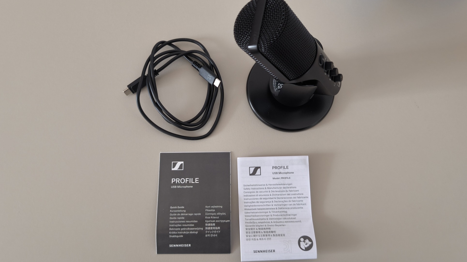 - A Profile-csomag tartalma: mikrofon, asztali állvány és 1,2 m-es USB-C kábel
