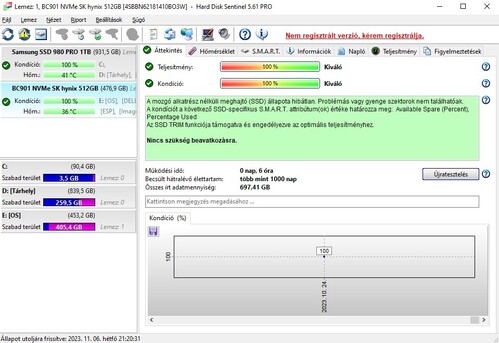 Új Sk Hynix BC901 512 GB villámgyors 4. generációs NVMe SSD 4800/4400MB/s