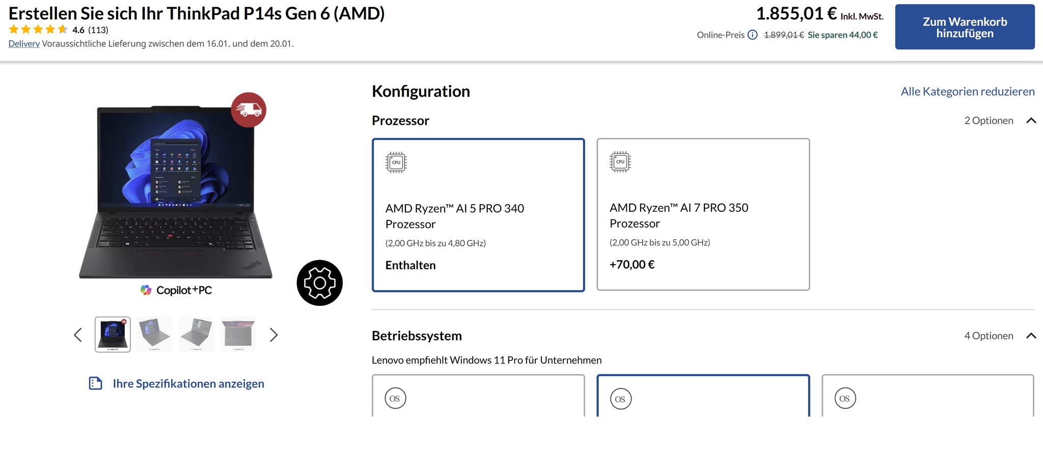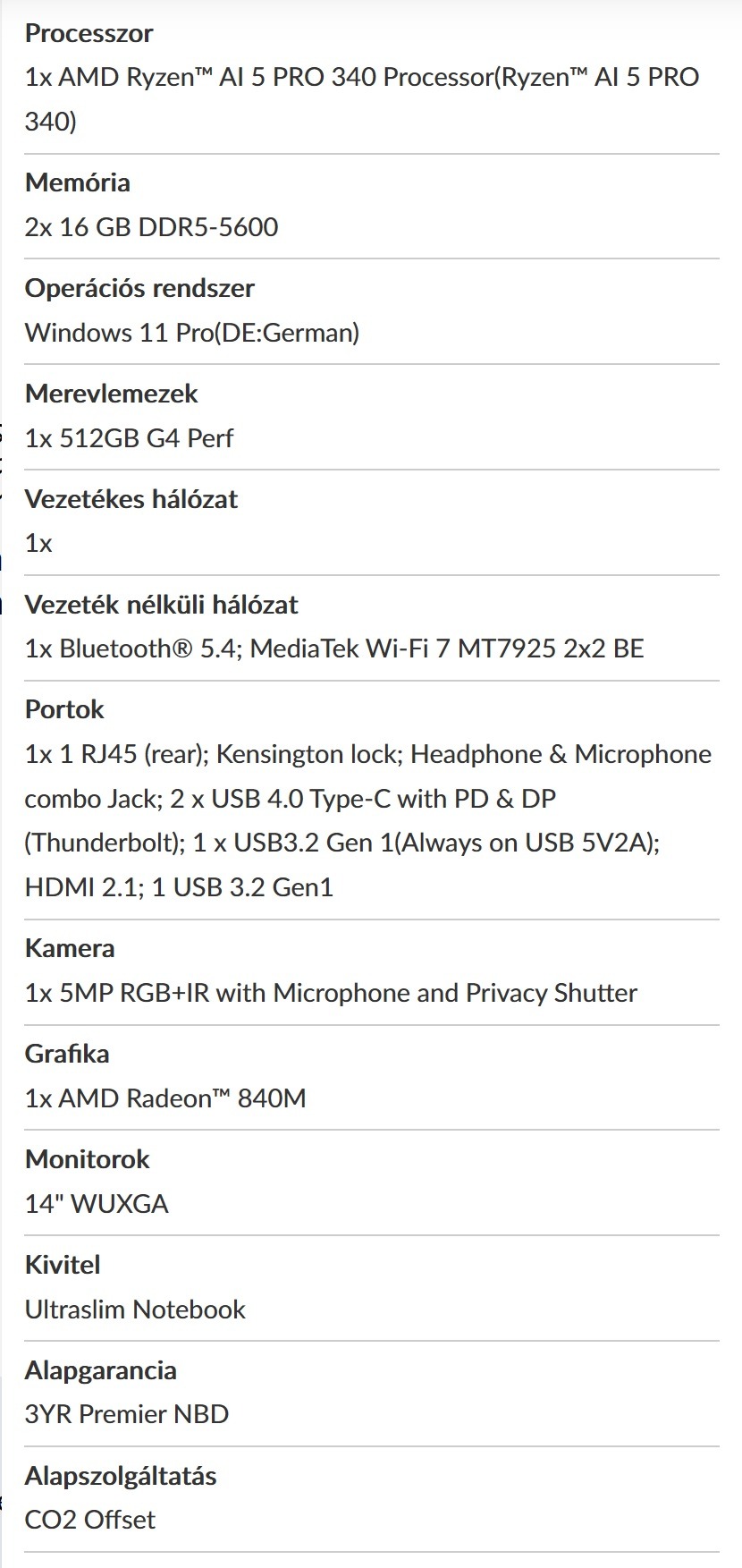 Új Thinkpad P14s Gen 6, Ryzen Ai 5 Pro 340, Radeon 840M, FHD+ 400nit, 32GB, 512GB