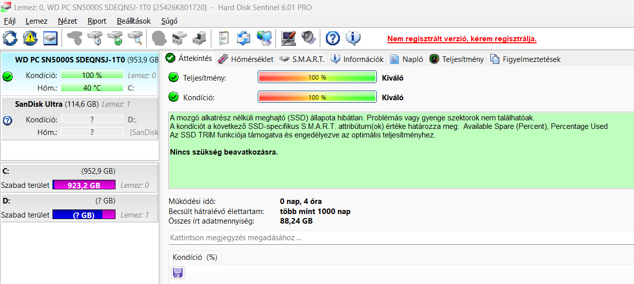 ÚJ! 1TB Western Digital SN5000s PCIe4x4 6000/5400 MB/s