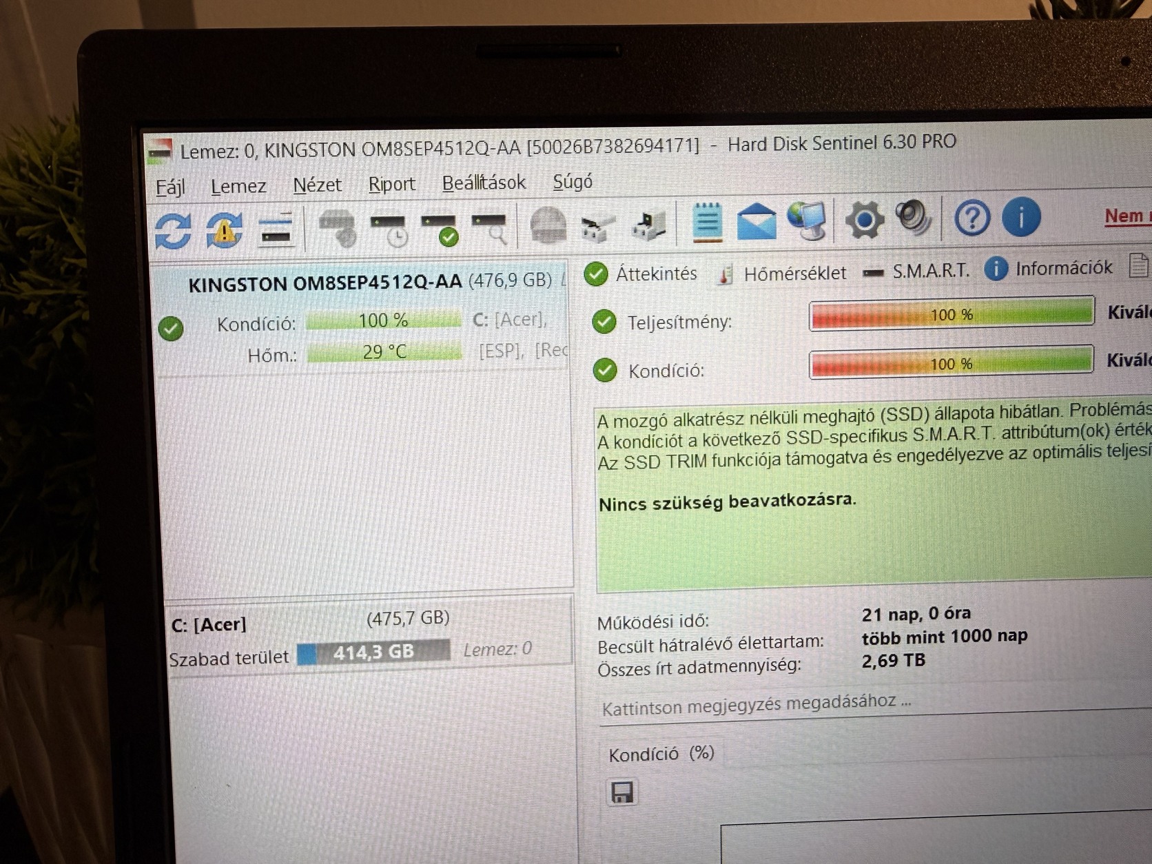 - 512 GB SSD meghajtó