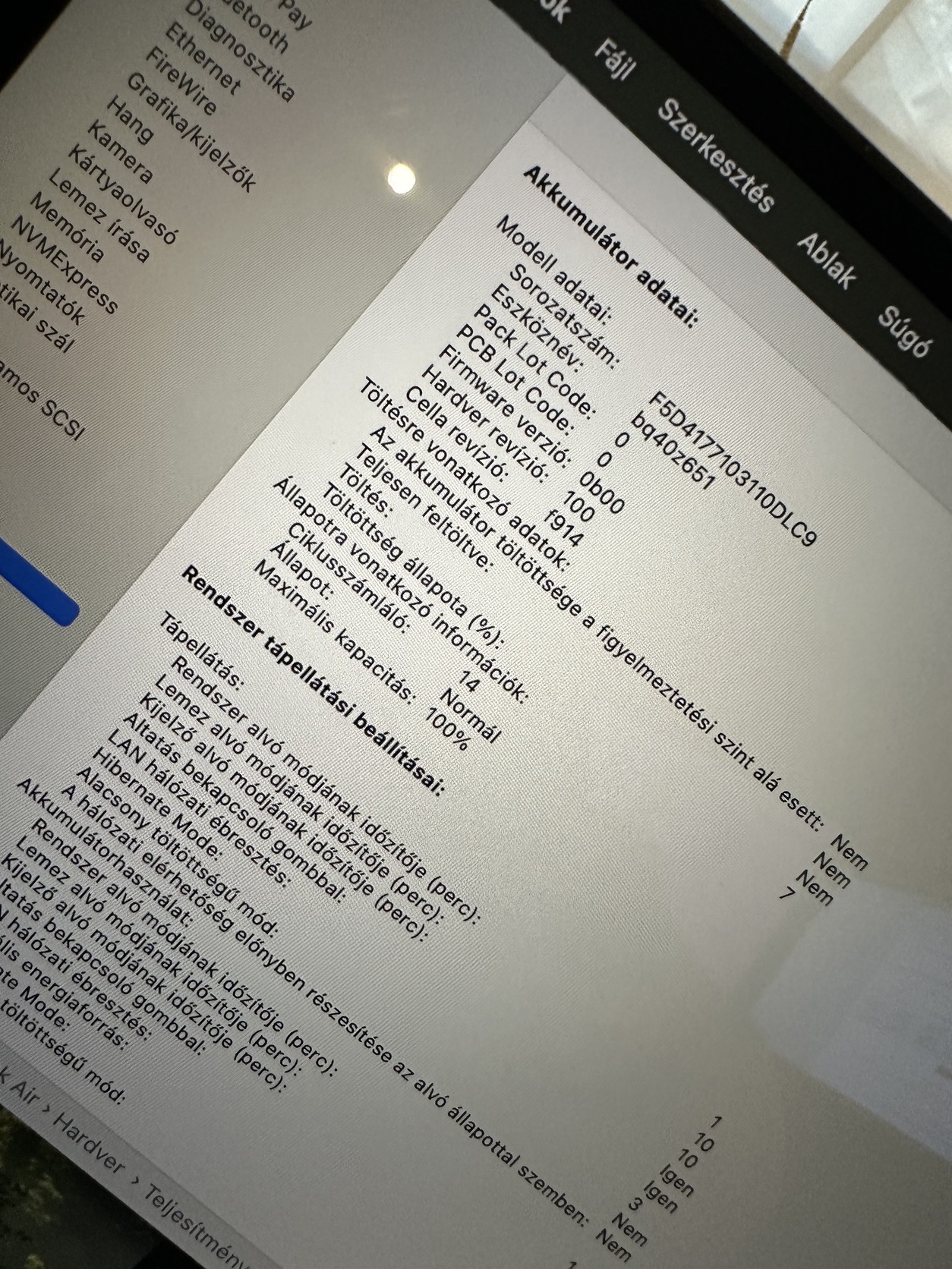 Wi-Fi 802.11 ax • Bluetooth 5.3 • USB-C 4.0 (2db) • 1080p FaceTime HD kamera • Négy hangszórós hangrendszer, Támogatja többek között az AAC-, az MP3-, az Apple Lossless, a FLAC-, a Dolby Digital, a Dolby Digital Plus és a Dolby Atmos formátumot • Ujjlenyomat olvasó • 52.6Whr beépített (akár 18 óra filmnézés Apple TV applikációval)
