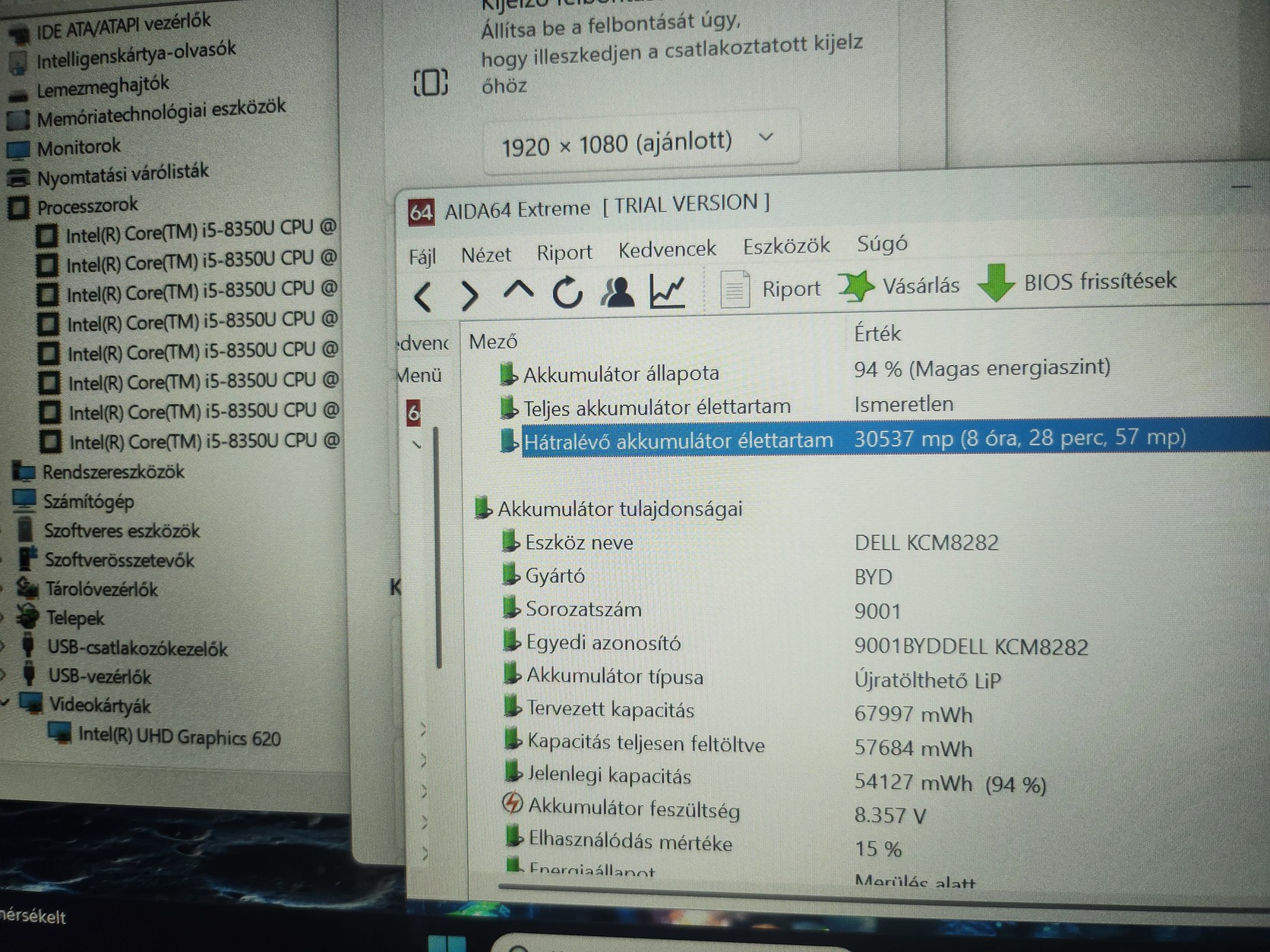 Újszerű ÉRINTŐS Dell,14"FullHd IPS,8.gen core i5(8x3,6Ghz)12-32GB/256-512GB,MAGYAR Vil.bill –
