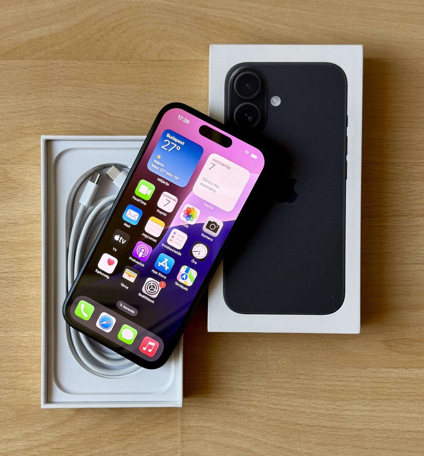 újszerű iPhone 16 128GB black fekete független 3 év Apple garancia