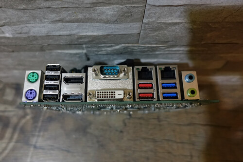 2 x displayport, DVI, RS-232 (serial) soros port, PS2 és audio