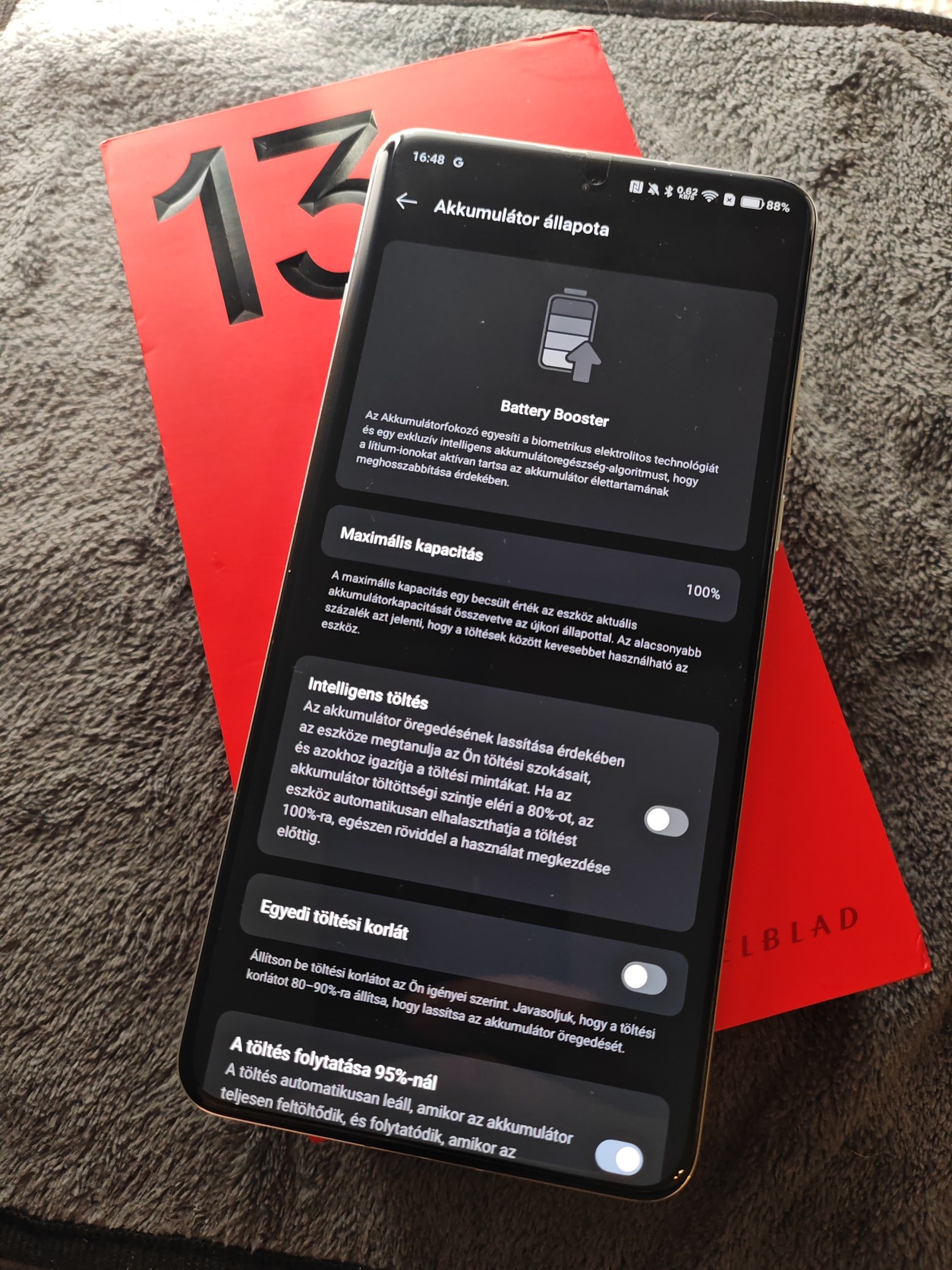 Akkumulátora 100%-os. Gyári dobozával, bontatlan töltővezetékével, ajándék Aramid tokkal és hidrogél fóliával.