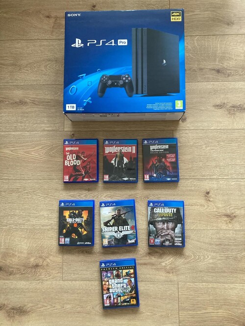 Eladó egy alig használt PS4 Pro + 7 játék.