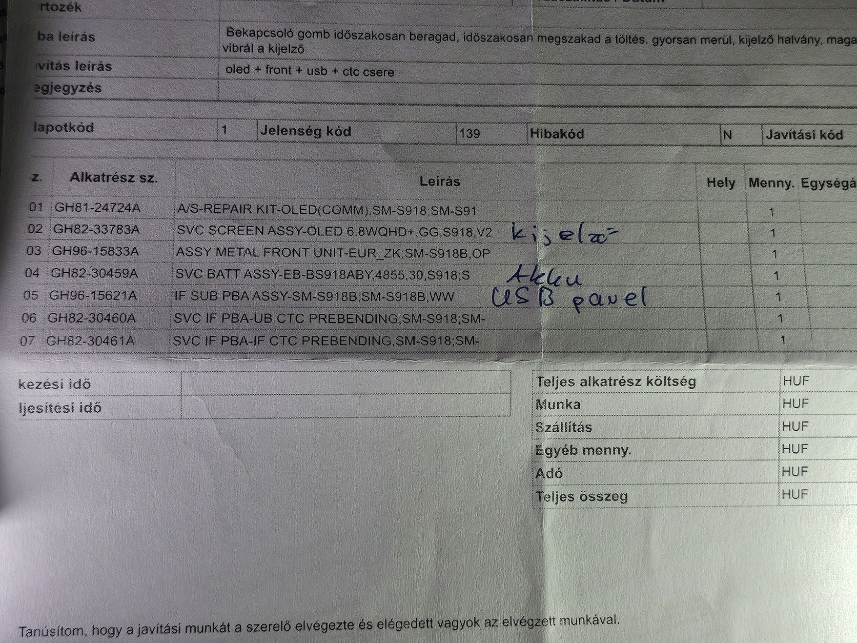 A telefon nagyobb garanciális felújításon esett át: