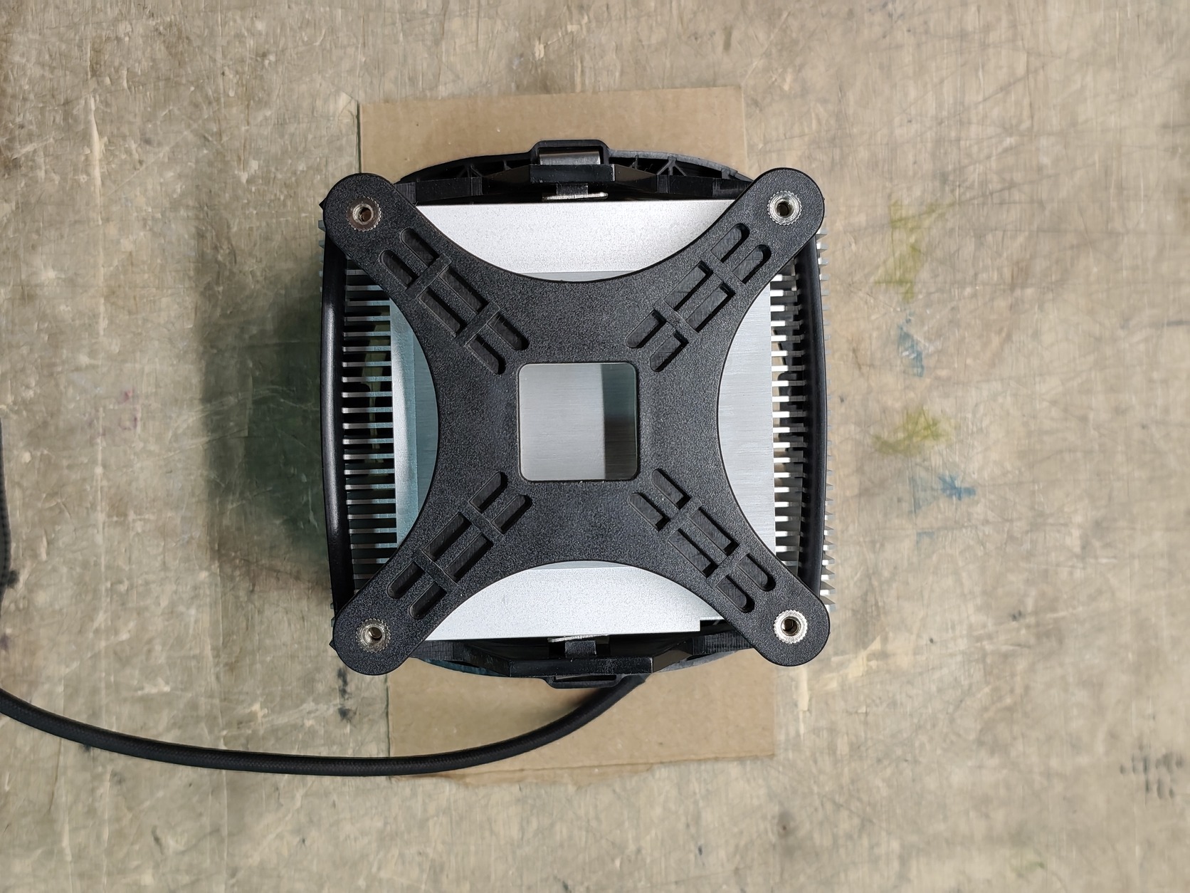 A ventilátor gumi rezgéscsillapító rögzítői meggyengültek, ezeket jó minőségű fekete csavarokra cseréltem, és mivel a ventilátor nem produkál jelentős vibrációt ezért nincs is szükség rezgéscsillapításra. A gumit a gyártó szimpla design- és költség megfontolásokból alkalmazhatta.