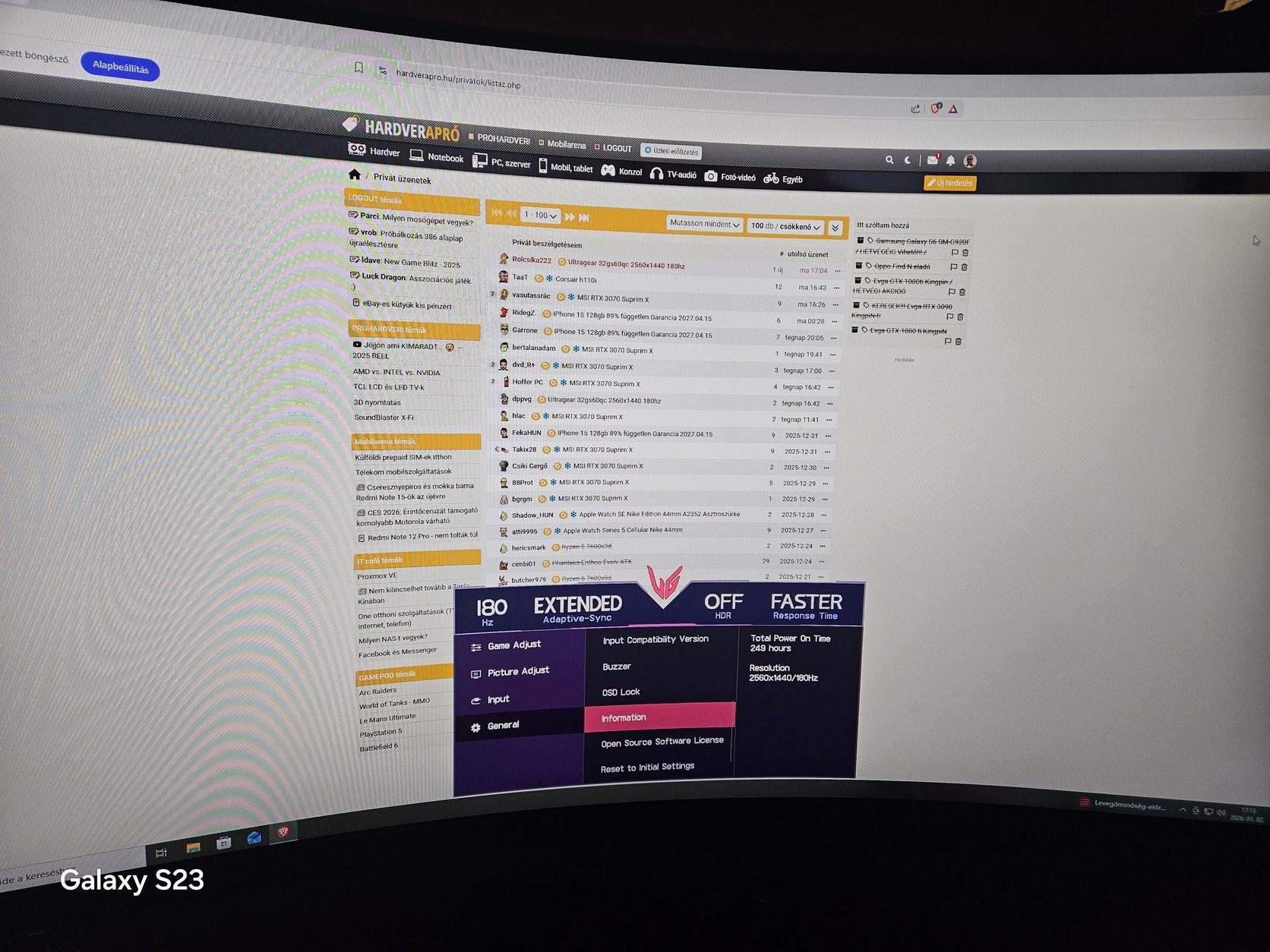 Eladóvá vált monitor 249h üzemidővel.