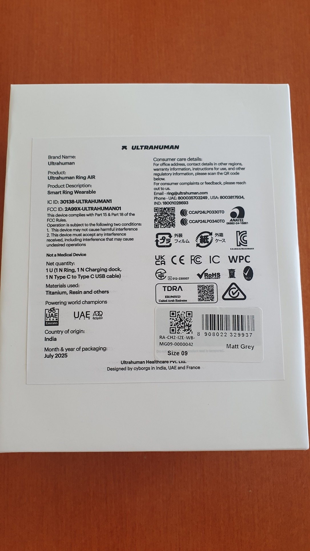 Ultrahuman Ring Air matt grey size 9