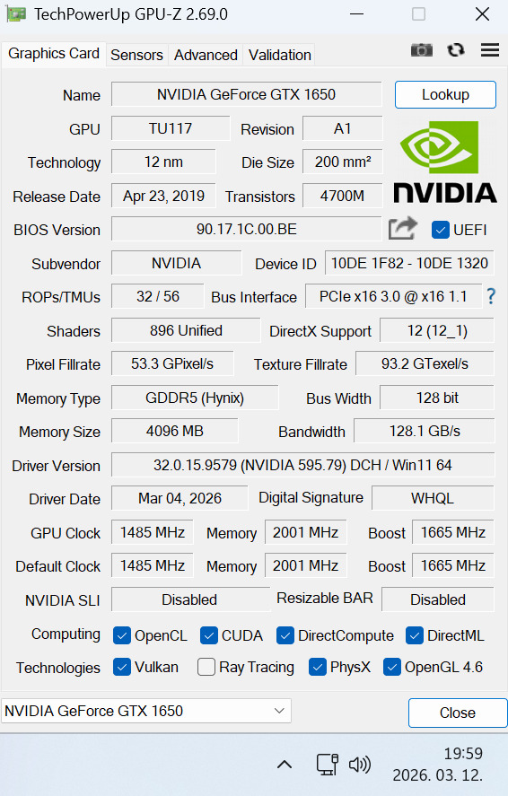 - Videókártya: Manli GTX 1650 (4 GB, GDDR5)