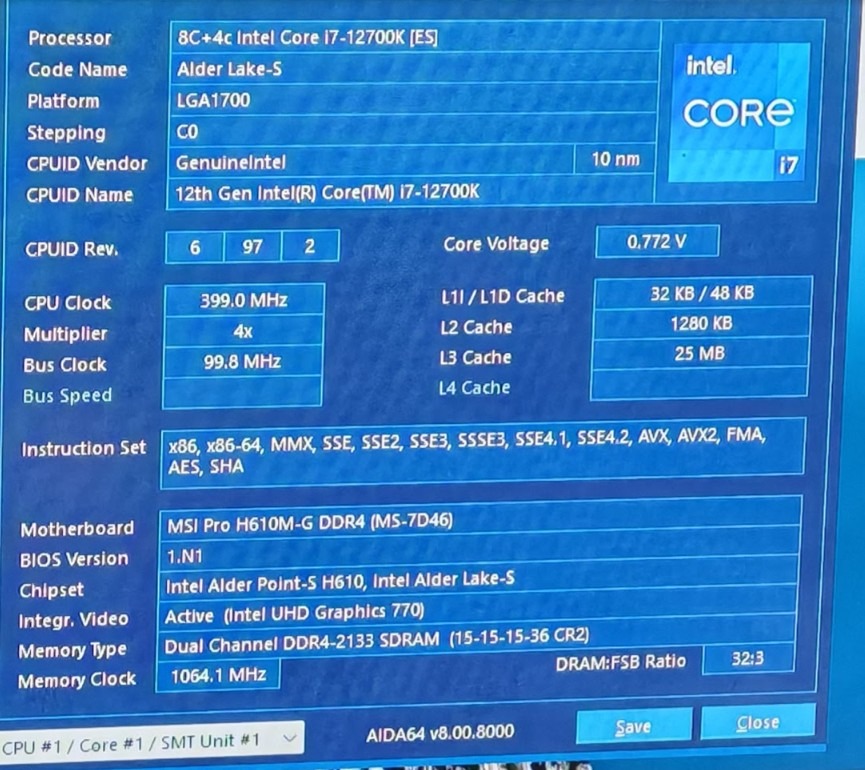 Intel® Core™ i7-12700K ES confidential processzor 25 MB gyorsítótár 70e windows alatt is 12700K ES ír ki.