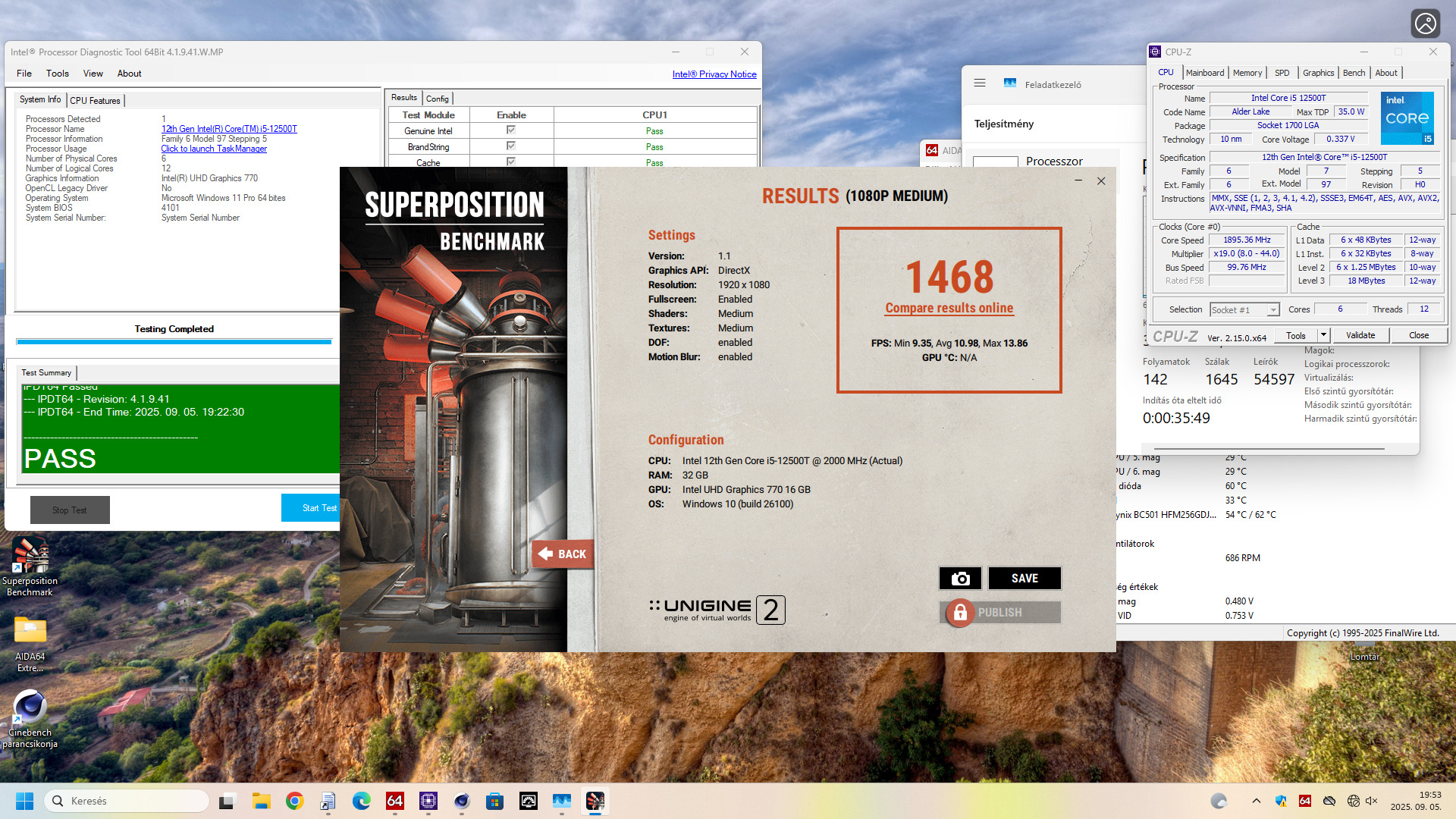 Intel® Core™ i5-12500T 18 MB gyorsítótár, akár 4,40 GHz 35w [link] 50e