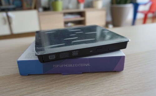 9.5mm Slim SATA DVD író csücsül benne,