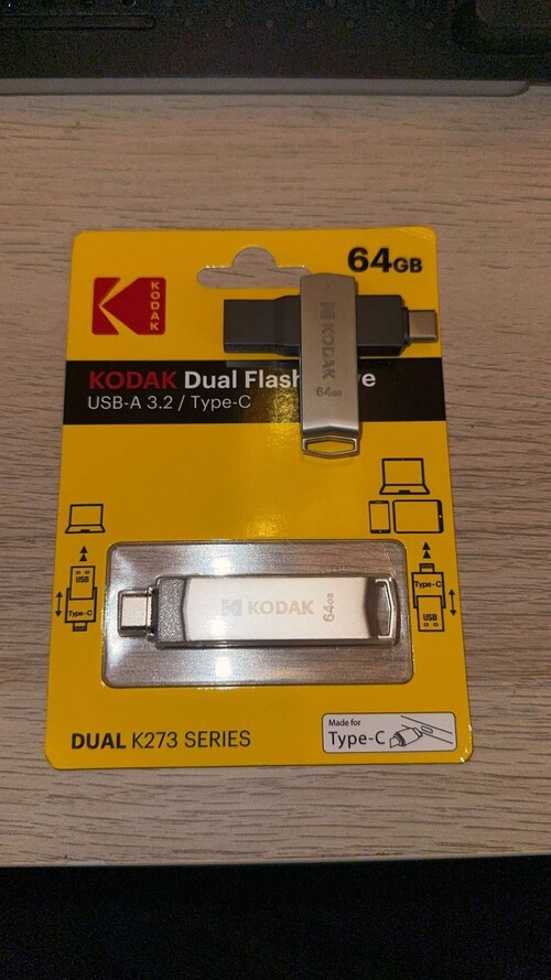 USB 3.2 / 64GB KODAK fém combo pendrive normál USB + USB-C csatival