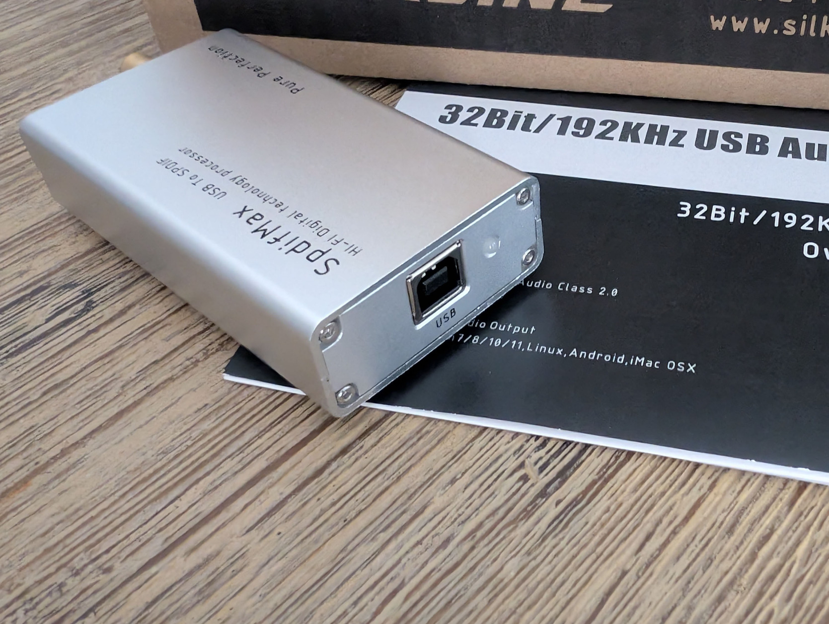 Támogatja a 32 bites / 192 kHz-es PCM-et az USB-B 2.0 portján keresztül.