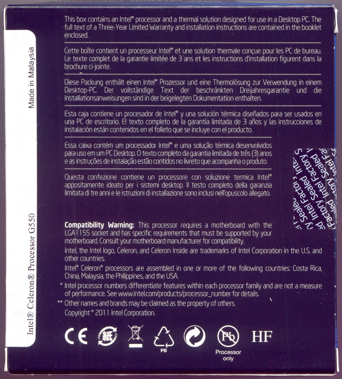 Vadonatúj bontatlan Intel Celeron G550 2.6 GHz LGA 1155 SR061 (2MB Cache, 2c/2t) processzor CPU