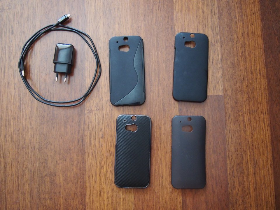 -tartozékok: HTC töltőfej, adatkábel, 4db tok