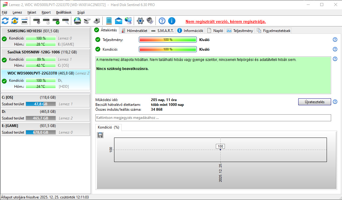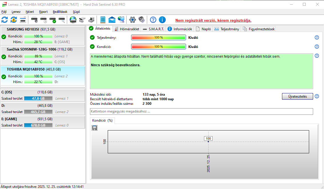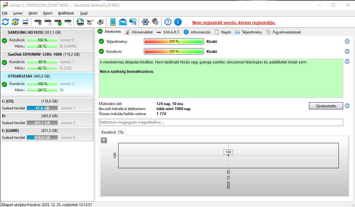 - Samsung HD103UJ (1TB) / Állapot: 100/47 / Napok száma: (4870) (3K)