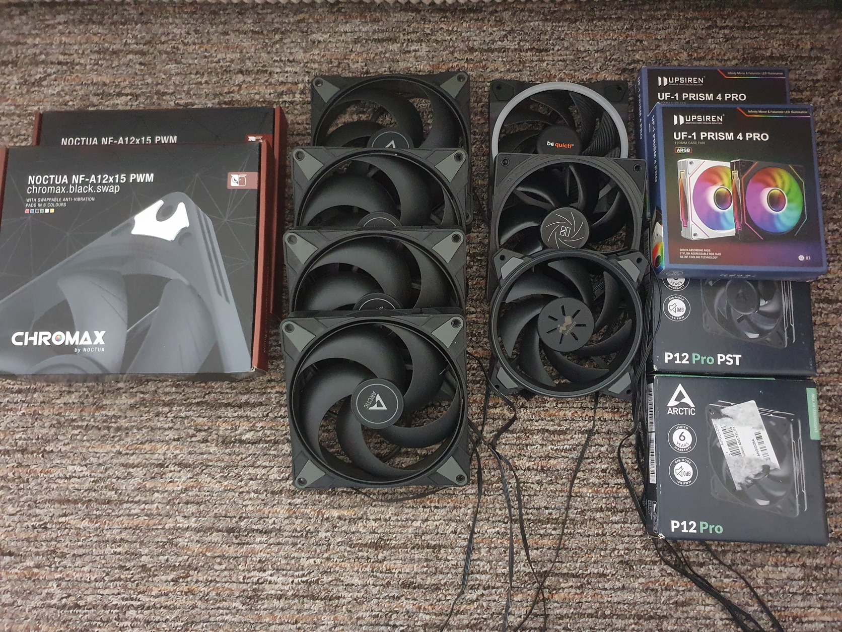 Ha érdekel, írok listát. A 2 noctua 15 mm vastag, azaz slim. A 4 db arctic p max 14 cm-es, minden más 12 cm-es. Új és használt is van közte. Igény esetén rgb vezérlő és hub is.