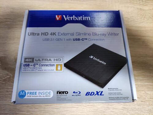 Verbatim Externer Slimline-Blu-ray író Ultra HD 4K USB-C 43888