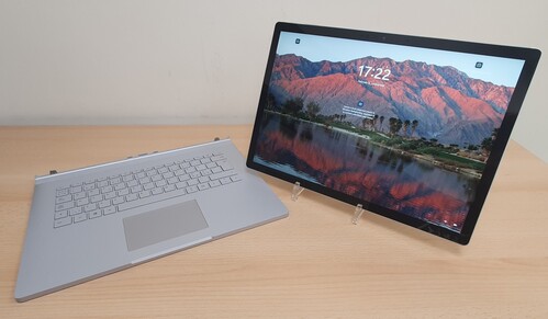 Microsoft Surface Book 2 , üzletből, garanciával, mélyen a listaára alatt, világító billetnyűzetes, több módozatú, levehető retina kijelzős, akár tabletként is használható teljes fémvázas, és fémgombos, Prémium ultrabook.