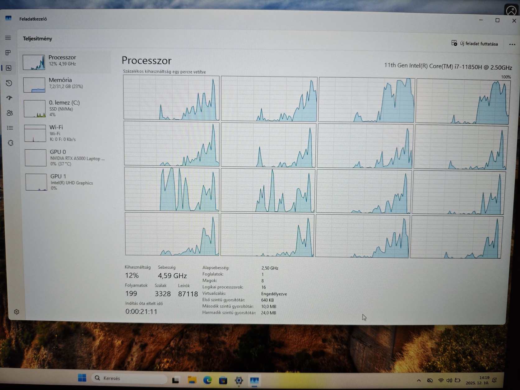 Intel Core i7-11850H 8mag/16szál 4.8GHz turbó órajel!