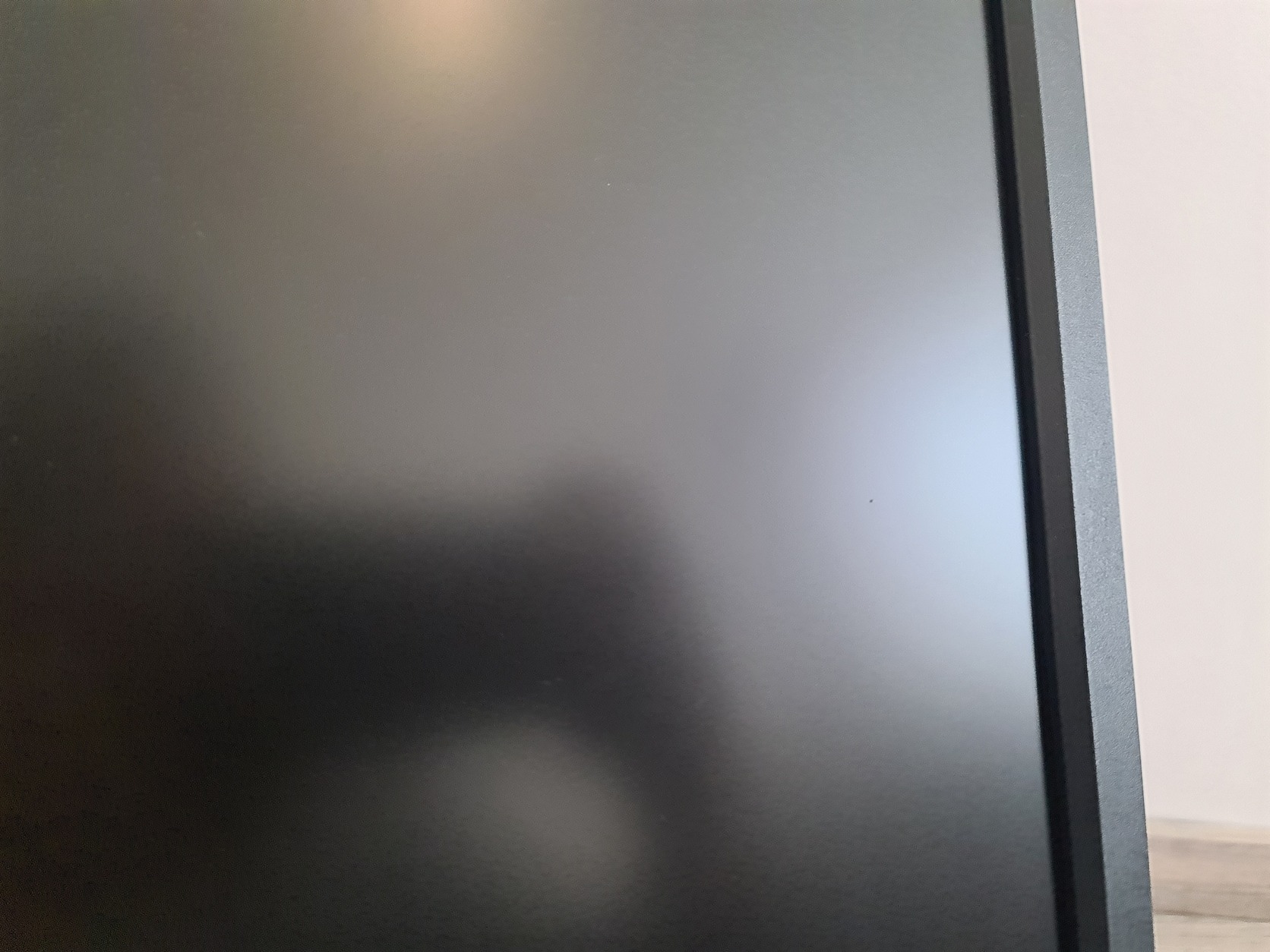A monitor jobb oldalán egy gombostűhegy nagyságú benyomódás, próbáltam jó képet csinálni róla.