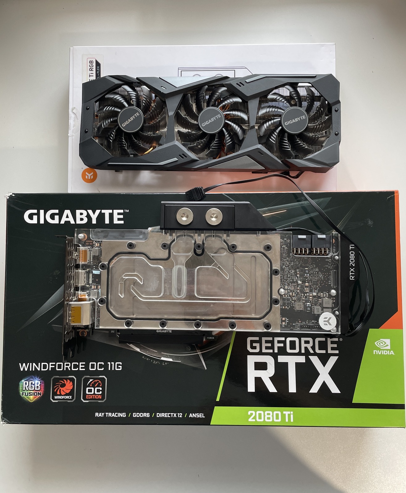 A kártya használható vizhűtéssel is, ahogy én is használtam, vagy visszaszerelhető léghűtésessé is, mivel minden eredeti tartozéka megvan. Mind a VGA-nak, mind a vízhűtőnek megvan a doboza.