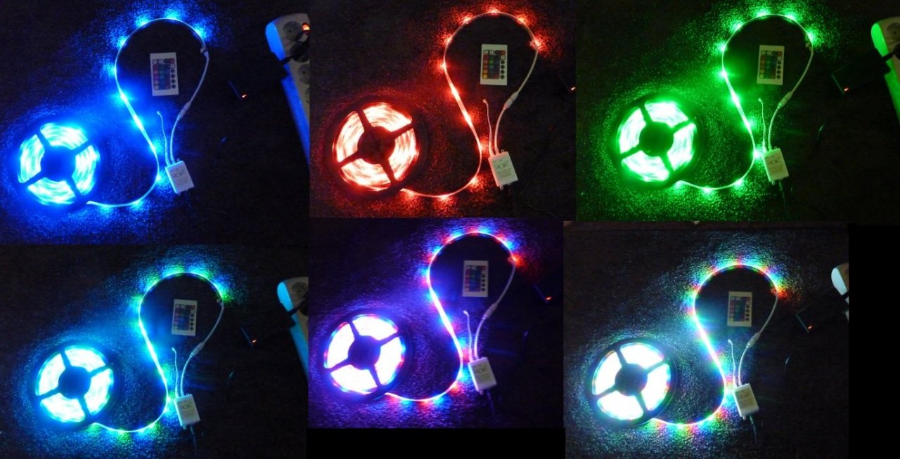DOBOZOS, KOMPLETT VÍZÁLLÓ komplett 5 méter hosszú RGB LED szalag 150 darab 3528 típusú SMD LED-el szerelve, 24 gombos távirányító és a 230V-os tápegység tartozék, csak a led sort csatlakoztatni kell a vezérlővel és a hálózatba bedugni a transzformátort és máris működik.