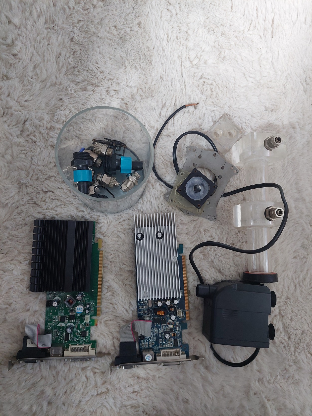 Elvihető megmaradt vizhűtés alaktrészek. Pumpa is a csomag része. Illetve 2db régi videokártya. Nem tudom hogy müködnek-e. Egyben vihetőek szigethalomról, vagy esetleges BP V. kerületből, egyeztetés alapján.