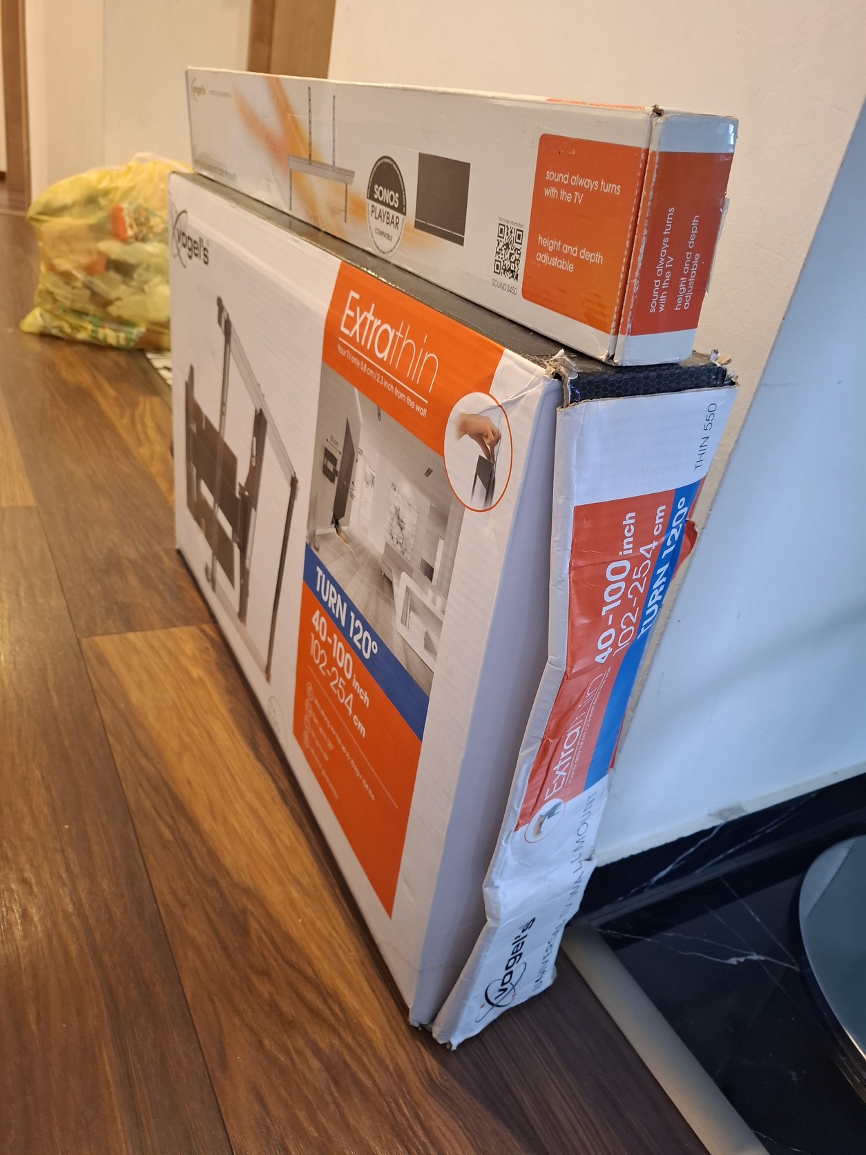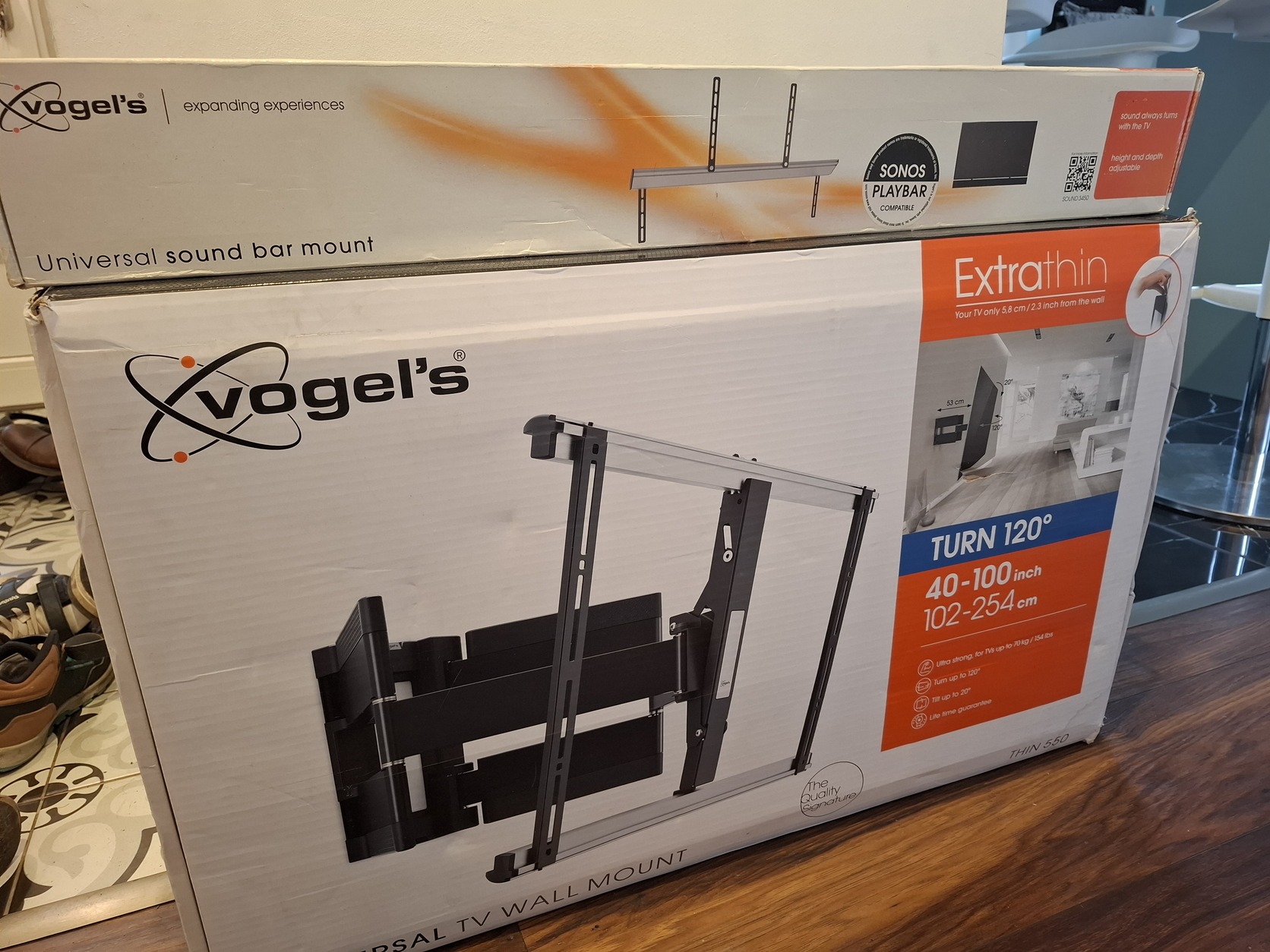 Vogel's THIN 550 ExtraThin forgatható TV fali tartó 40-100 hüvelykes tévékhez, németországból rendelt, sajnos a szállításnál a doboza megsérült, de a tv taró teljesen ép. Kibotott de új, sajnos a falon a kábelek pont ott mennek ahova kellene felfurnom így nem feleslegessé vált ajándék soundbar tartó, mej szintén kibontott de sosem használt az sem.
