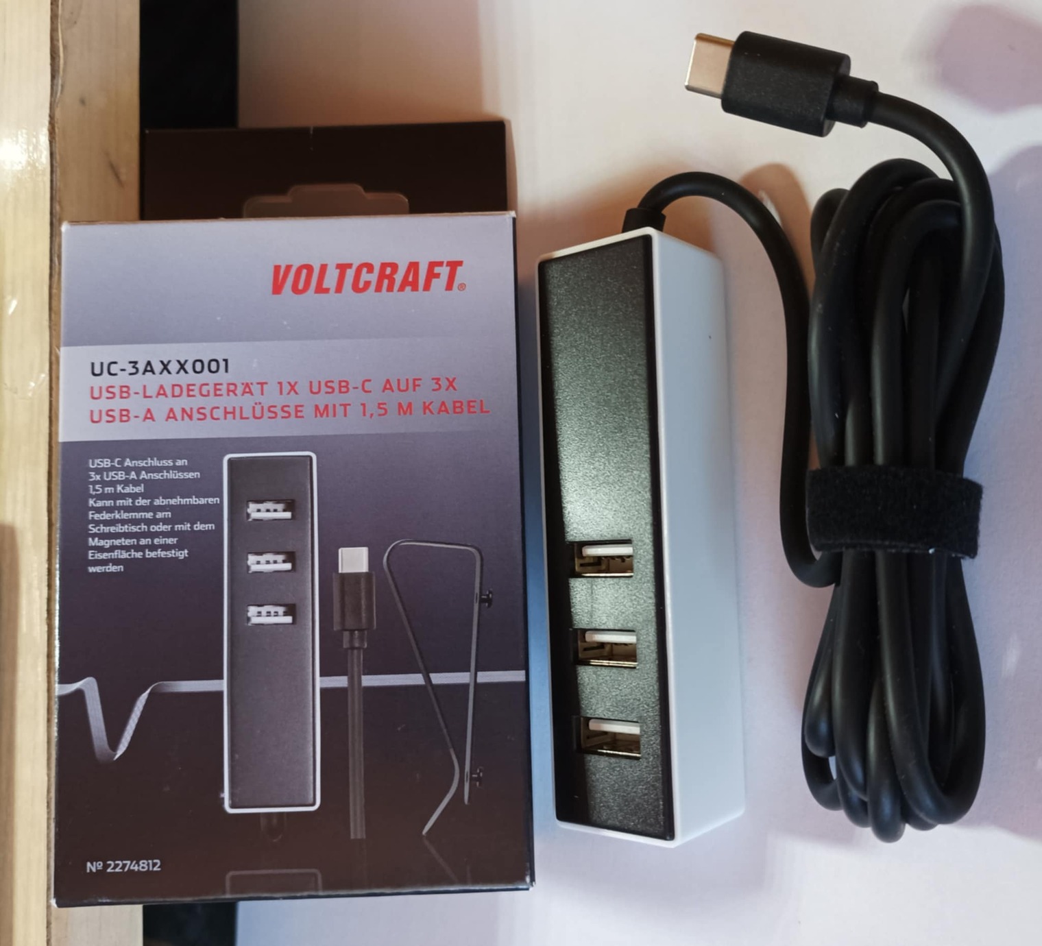 Eladó a képeken látható Voltcraft HUB 3XUSB porttal és USB-C csatlakozóval, 1,5m kábellel.