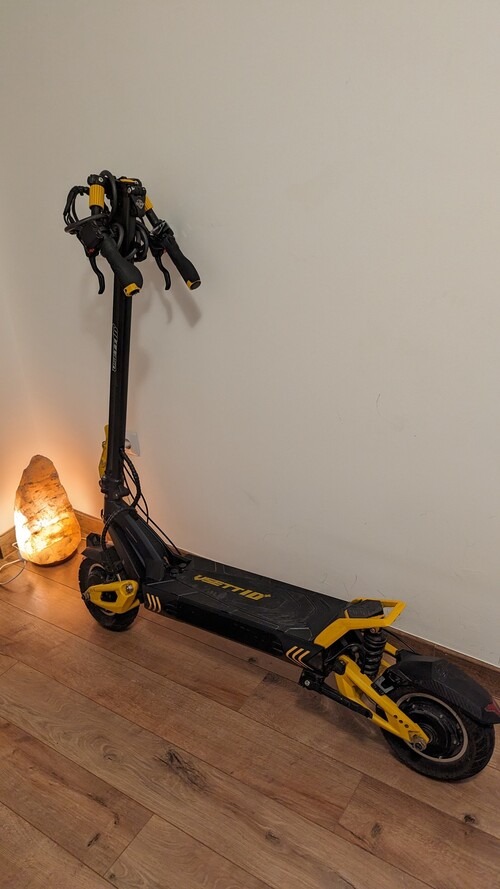 Tavaly tavasszal vettem, 2335km van benne viszont tökéletesen megy a mai napig! Sportos roller ami brutálisan gyorsul és a felfüggesztése tökéletes a magyar utakra, simán lehet kocsik között menni vele teljesítmény alapján, nem igazán előztek még le vele Budapesten belső kerületekbe 😃 Mivel viszonylag keskeny a felülete és hátul van fogója ezért szintén praktikus a tárolása és a kormány még össze csukható is ami nagy előny volt számomra liftbe, lakásba vinni.