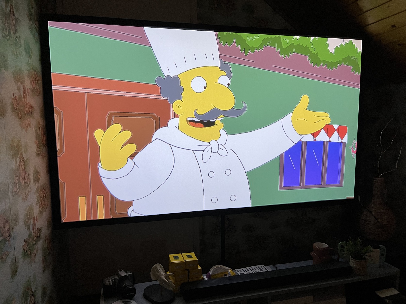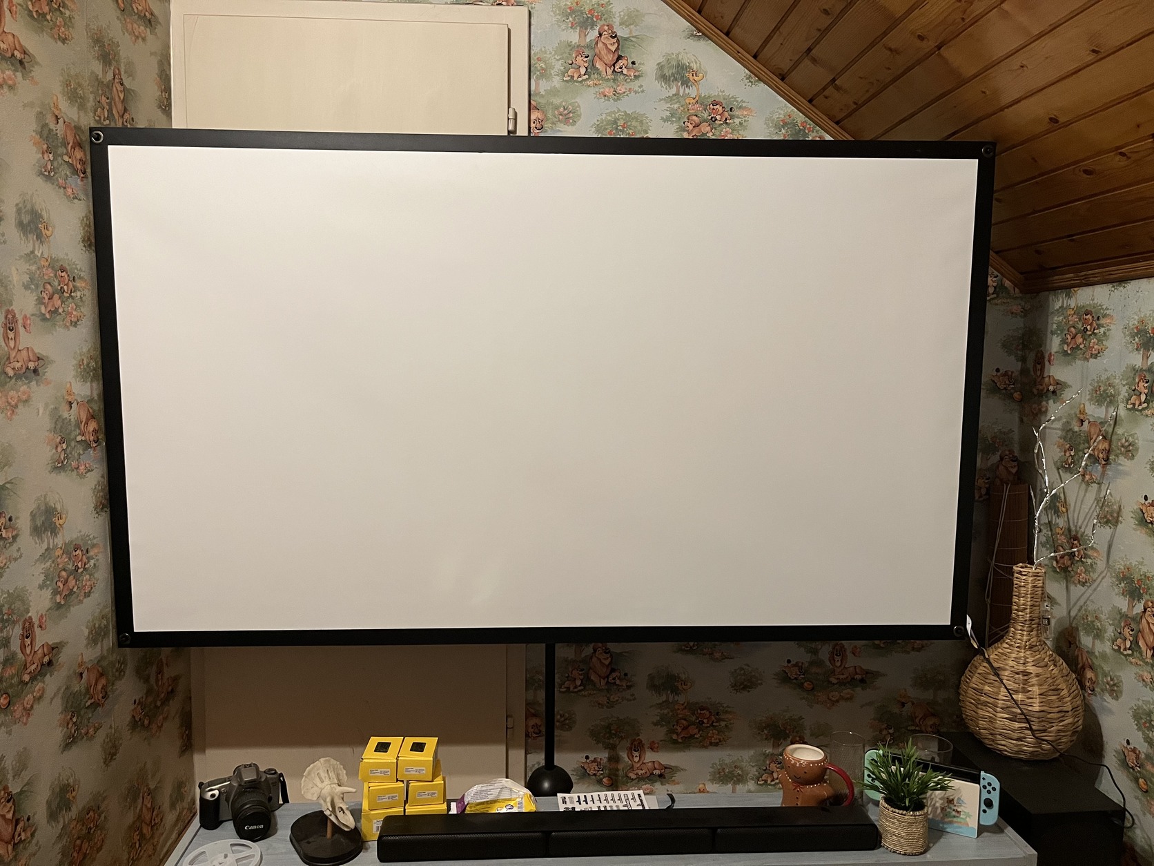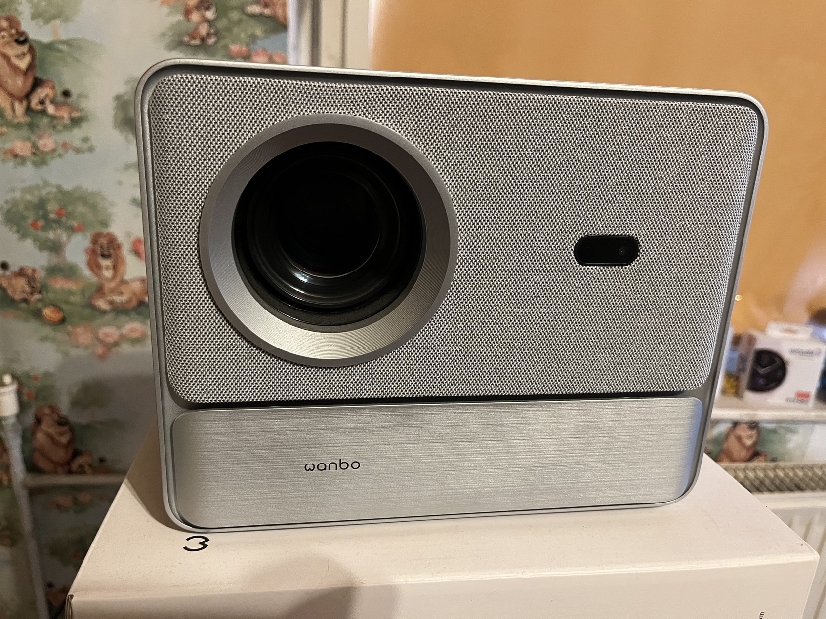 Eladó Wanbo DaVinci 1 projektor dobozával, távirányítóval, 80”-os vászon állvánnyal, fali konzollal.