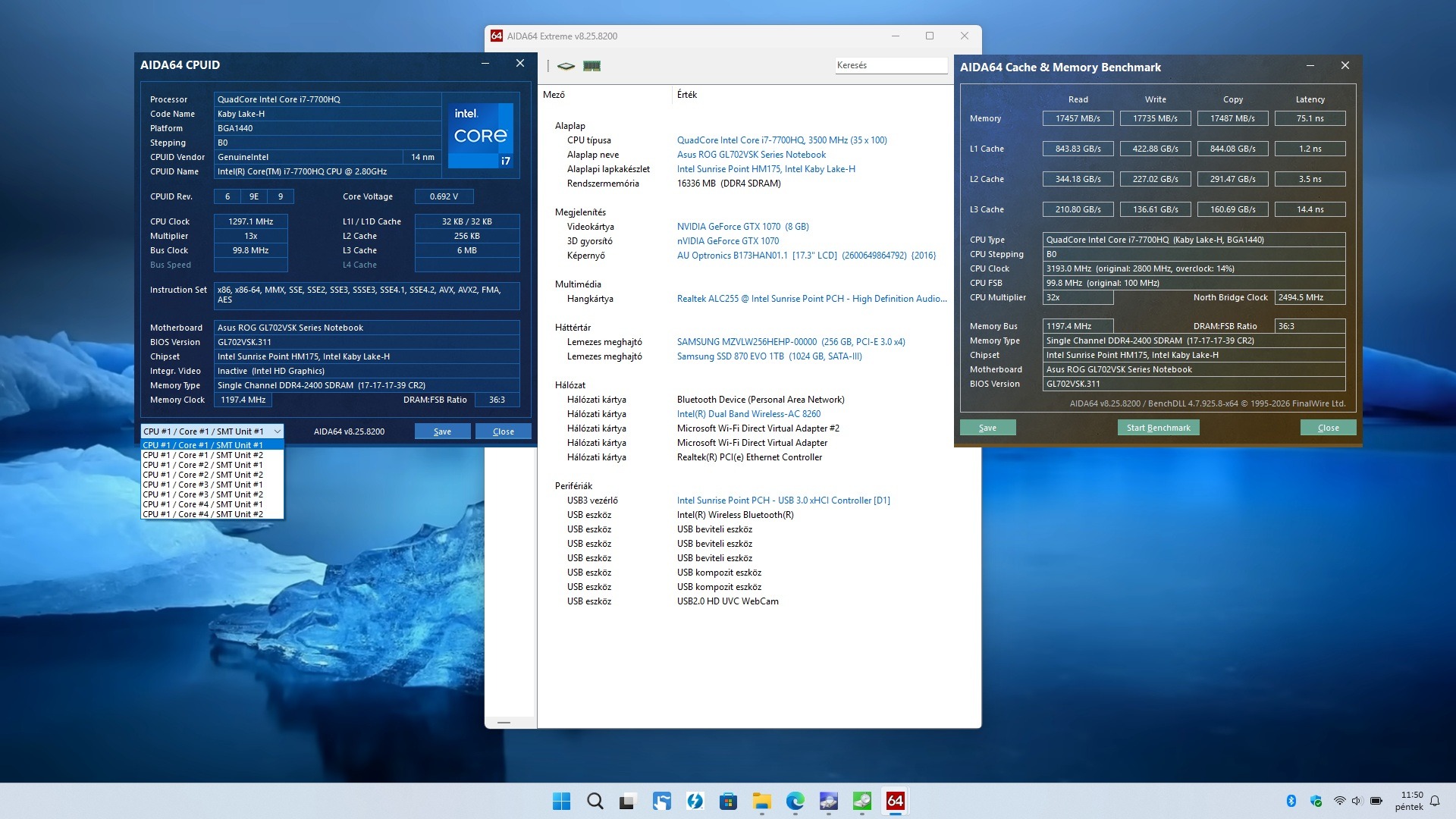 Core i7-7700HQ 4C/8T × boost= up to 3.8GHz