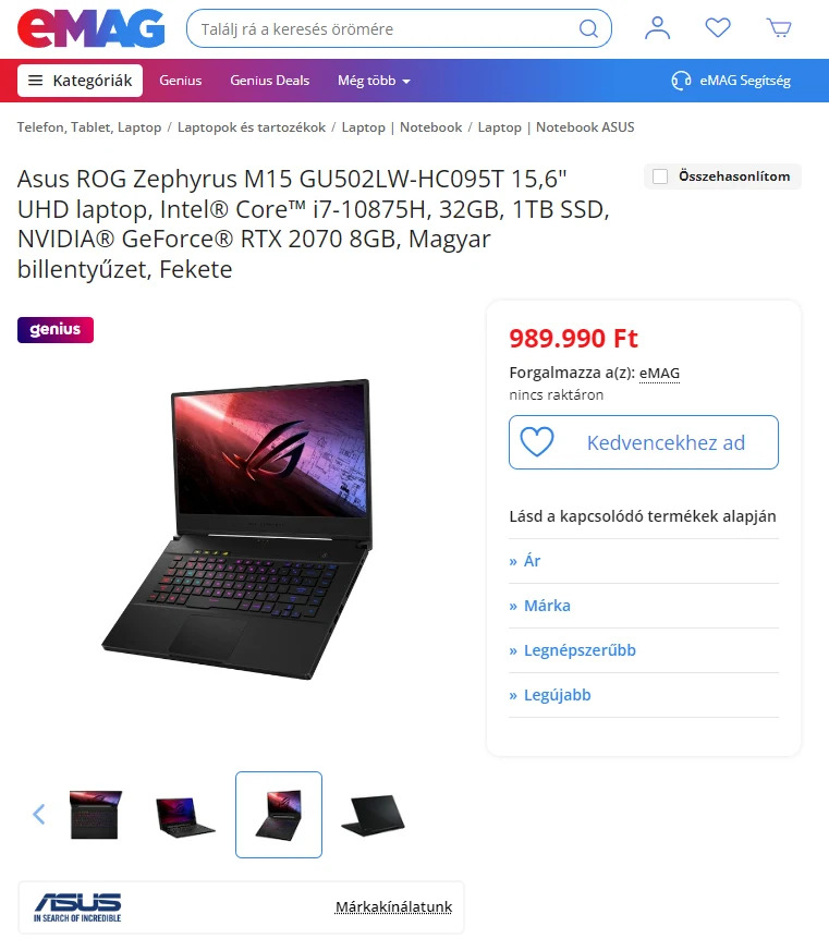 Jegelve – JEGELVE! MAGYAR-RGB ! Zephyrus M15 - 15.6" 4K UHD 100% sRGB - i7 / RTX / 32/ 2 TB NVME +GAR