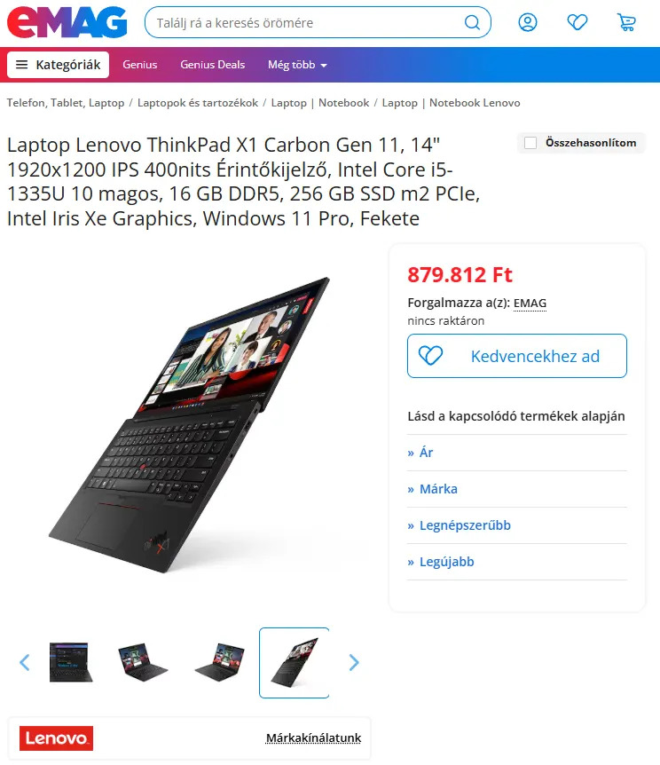 Érintős ! ThinkPad X1 Carbon Gen11 - 14"iPS 100% sRGB, i5-1335u, 16 / 256 SSD NVMe SZLA +GARANCIA