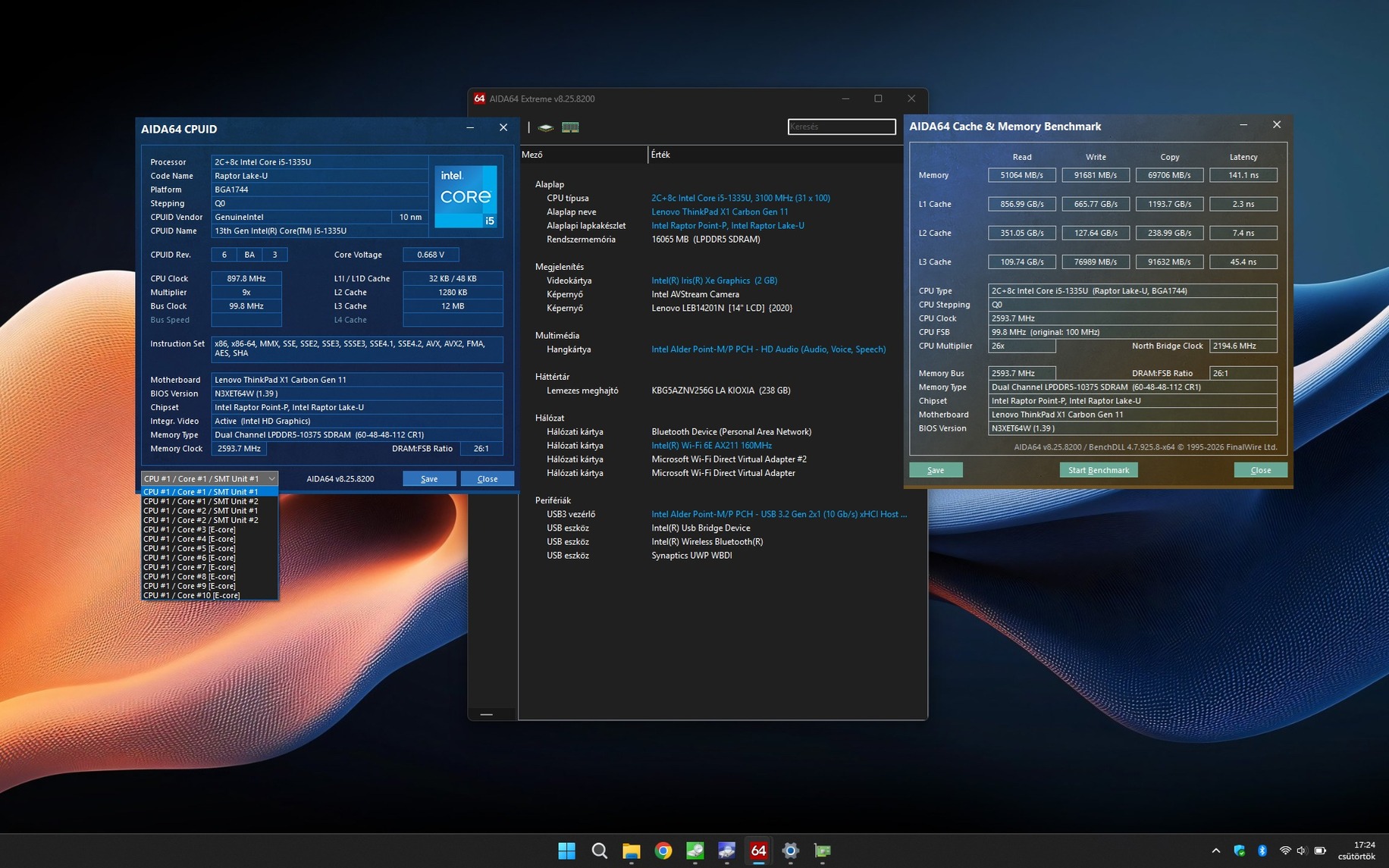 i5-1335U 10C/12T × boost= up to 4.60 GHz