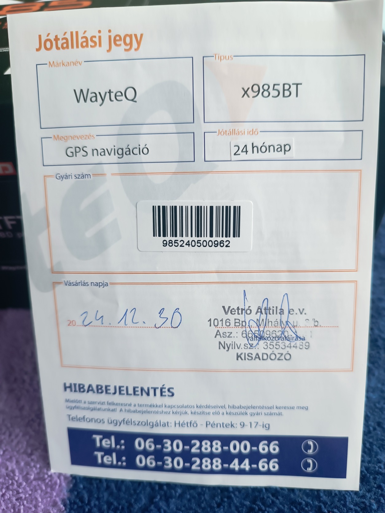 Jegelve – Wayteq X985BT GPS Navigáció Garancia: 2026.12