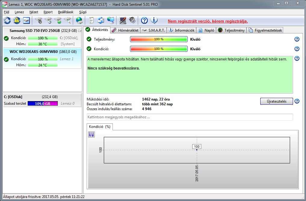 WD20EARS 2.0TB eladó, nem garanciális, 100% SMART értékekkel, 2011. április 6-i gyártású.