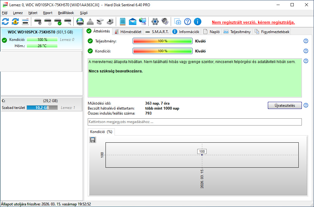 Eladó egy WD 1TB hdd. (100/100 363 nap)