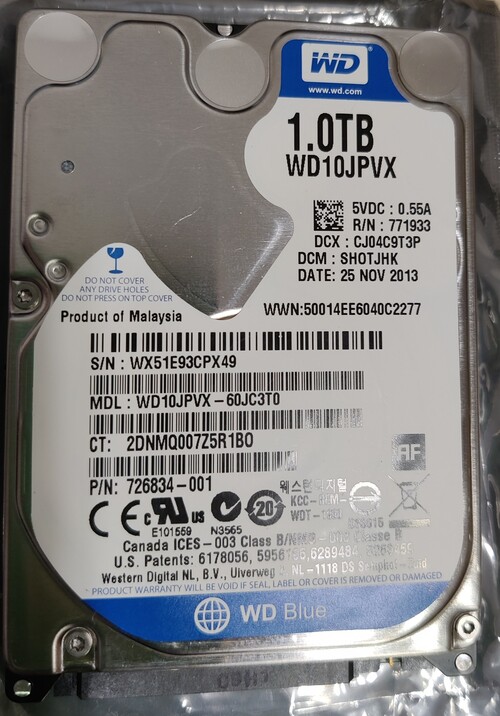 WD 1TB Laptop merevlemez HDD