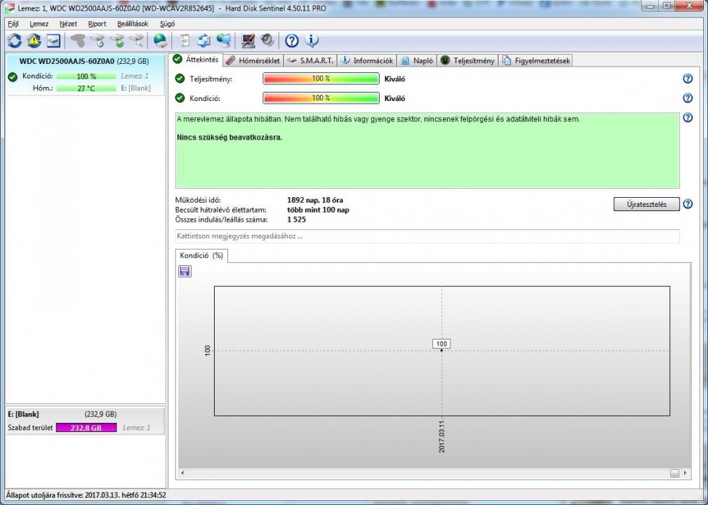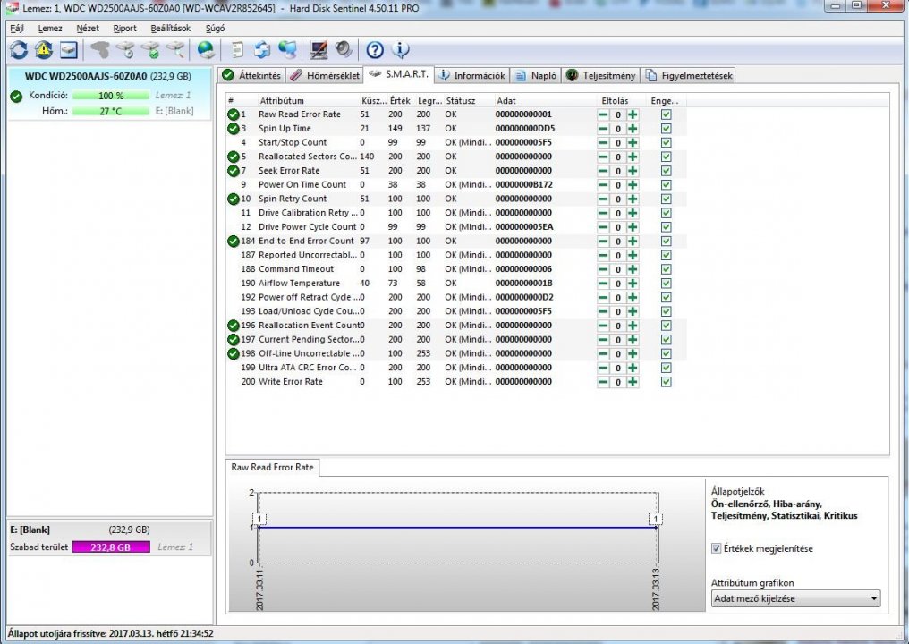 HDD Sentinel értékek a mellékelt fotókon.